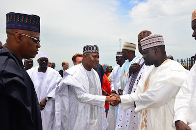 Alhaji Aliko Dangote and Irish musician and lead vocalist of rock band U2, Bono arrived Maiduguri today on a day official visit. He was received by Borno state Governor Hon. Kashim Shettima, Senate Majority Leader, Ali Ndume and other top government officials.