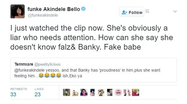 Nigerian movie star, Funke Akindele popularly known 'Jenifa' has called out at BB Naija housemate, Gifty for saying she doesn’t know Banky W and Falz.