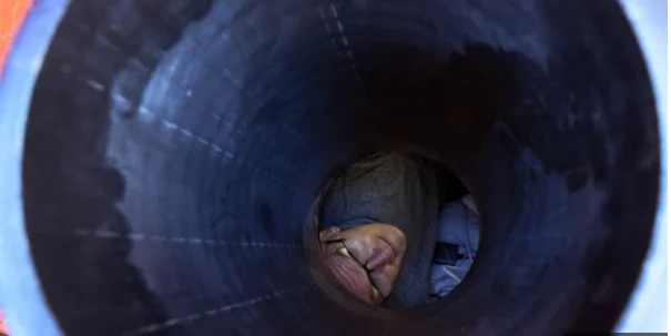 Air, food and water supplies are maintained through pipes connected to the underground coffin