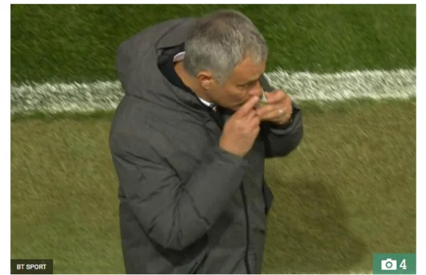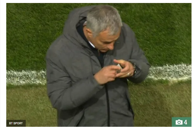 Mourinho was caught on cameras just as the second half of extra-time was about to begin at Old Trafford.