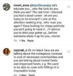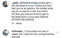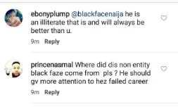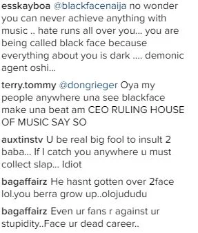 Tuface Idibia's fans attacked Blackface after the post. See some comments below: