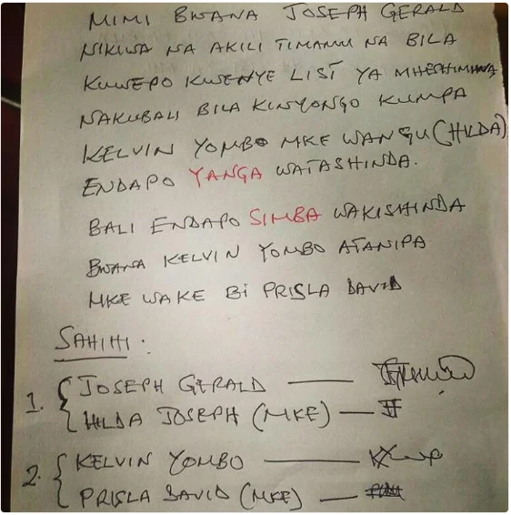A contract, which can be see above, has been signed by the two supporters and has even been verified by their wives.