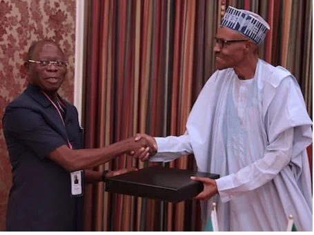 President Muhammadu Buhari on Thursday received the former governor of Edo State, Comrade Adams Oshiomole at the State House .